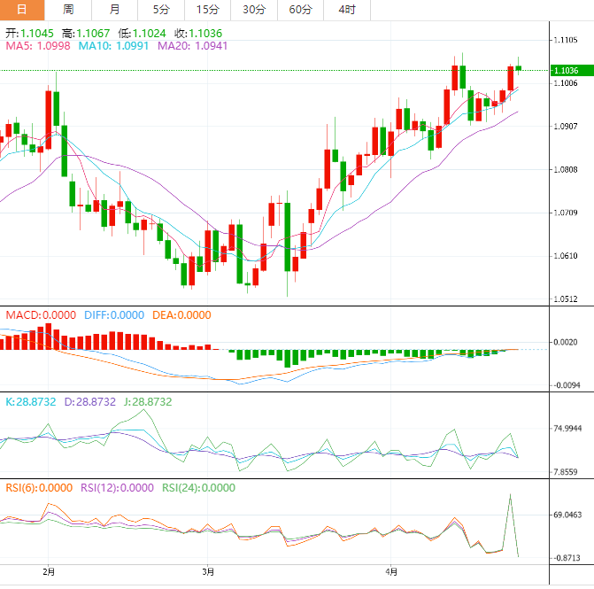 到目前为止,欧元兑美元在1.1027处下跌了0.16%,并面临下一个支撑位1.0909(4月17日的周最低价),其次是1.0831(4月10日的月最低价),最后是1.0788(4月3日的月最低价)。