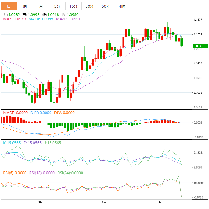 到目前为止,欧元兑美元已下跌0.64%至1.0921,并面临下一个竞争水平1.0909(4月17日的周最低价),其次是1.0831(4月10日的月最低价),最后是1.0795(100日移动均线)。