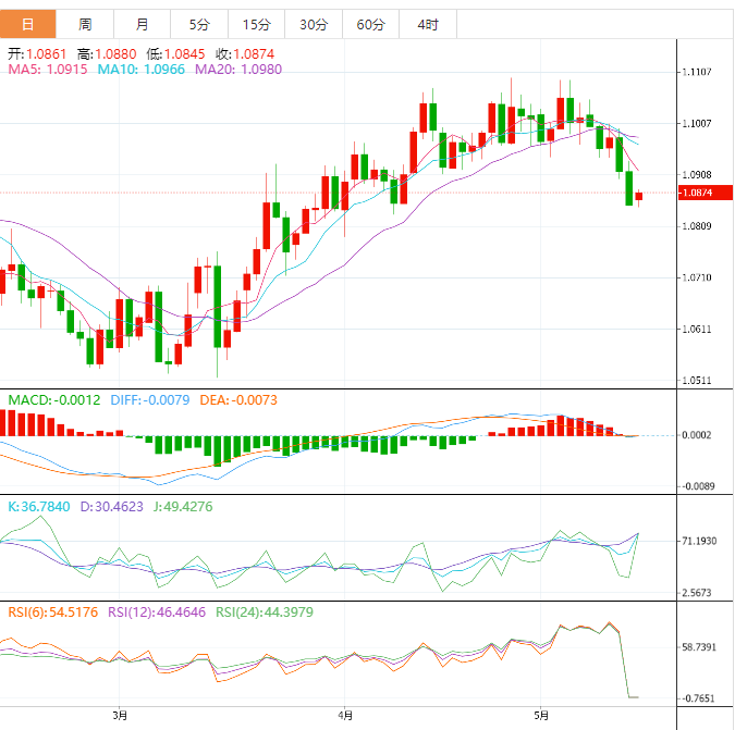 欧元基本面:欧元/美元试图自1.0850点反弹,但在延续反弹中突破1.0863时遇到阻力。美元出现上行势头耗尽的迹象,欧元/美元正试图延续反弹。市场情绪改善一定程度上提振风险敏感型资产。标准普尔500指数期货已经收复亚市早盘录得的大部分跌幅,因为投资者正忽略美国债务上限问题方面的风险,并受益于美联储(FED)将暂停紧缩政策紧箍咒的预期加大。