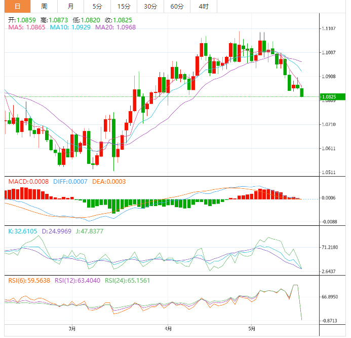 事实上,由于对美国债务上限问题的担忧有增无减,现货汇率在4月初出现的1.0830附近徘徊,而德国10年期国债收益率小幅下跌也伴随着每日下跌。