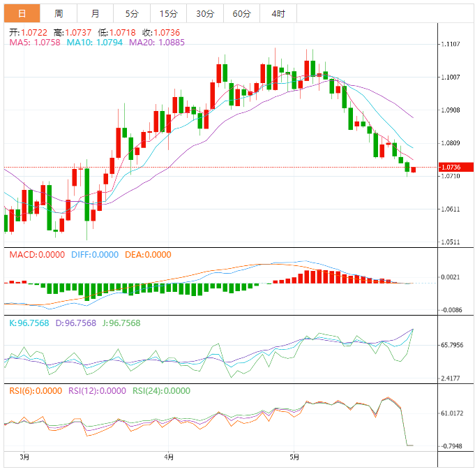 另一方面,上述支撑线和200日均线分别位于1.0710和1.0685附近,限制了欧元兑美元的短期下行空间。