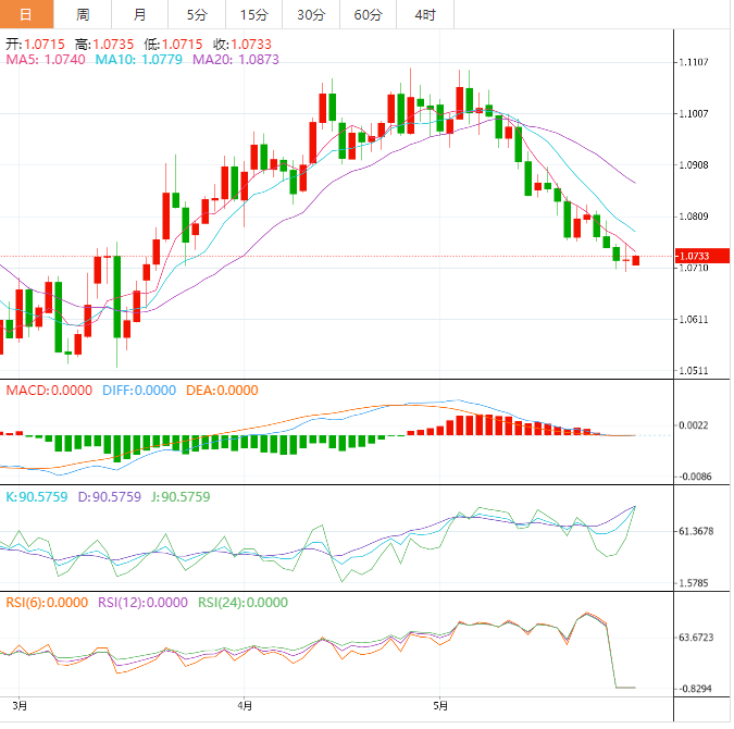 欧元兑美元在四小时范围内跌破了61.8%的斐波那契回撤位(从3月15日的低点1.0516至4月26日的高点1.1095绘制)1.0738。20期指数移动平均线(EMA) 1.0740对欧元多头来说是一个强大的障碍。该资产在下跌通道中拍卖,市场参与者将每次回调视为卖出机会。