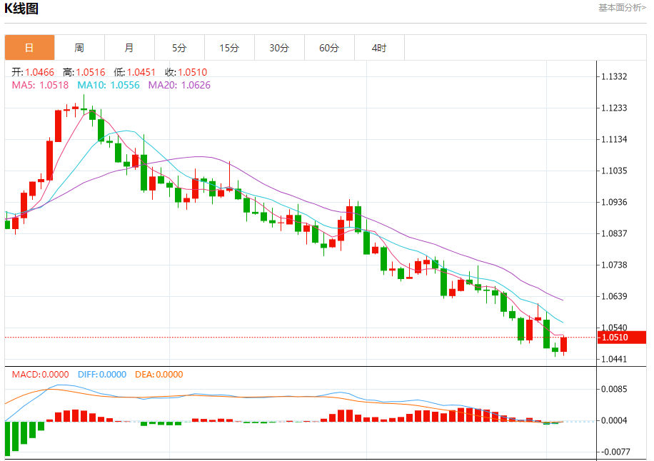 今日周三,截止目前欧元兑美元报1.0510,上涨0.41%。