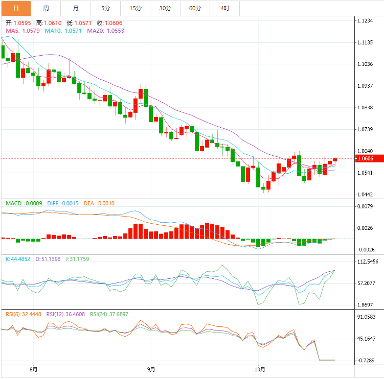 欧元兑美元在本周初的1.0600区域下方保持了盘整情绪。
