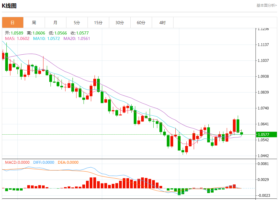 今日周三,截止目前欧元兑美元报1.0579,下跌0.10%。