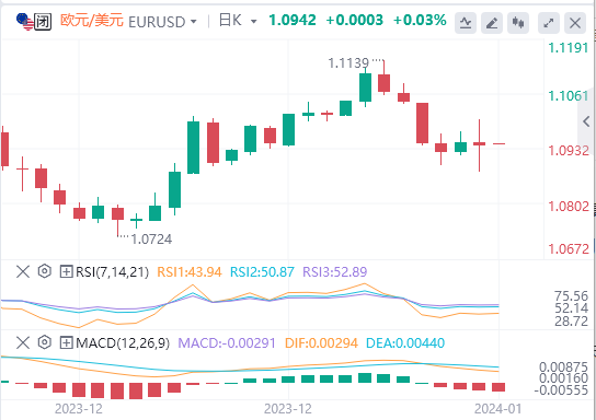 跌破1.09294美元支撑位和50天均线将使200天均线和1.07838美元支撑位发挥作用。14期每日RSI为50.46,表明欧元/美元在进入超买区域之前将回到1.11美元的水平。