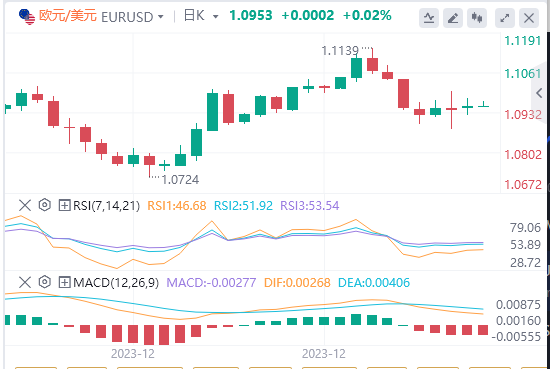 2、另一方面,欧洲央行(ECB)将在一段时间内把利率维持在纪录高位的预期,也使欧元区上个月的通胀预期大增,从而提振欧元。此外,欧洲央行官员鲍里斯-武伊契奇(BorisVujcic)周一表示,该央行预计夏季之前不会降息,并预计欧元区通胀率将逐步下降。尽管如此,市场已经定价欧洲央行在4月前降息25个基点(bps)的预期,这因此又对欧元/美元货币对构成利空。