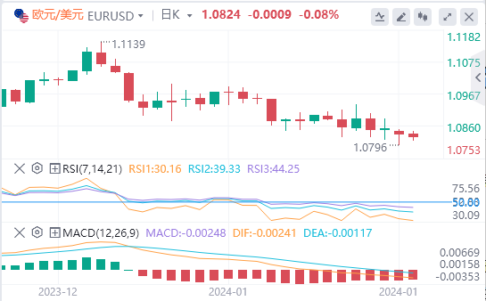 周一,欧洲央行官员的言论不一,对欧元构成了压力。欧洲央行副行长路易斯-德金多斯称,通胀风险偏向下行,欧洲央行决策者马里奥-森特诺则认为,央行应尽早开始降息,同时避免突然行动。管理委员会成员彼得-卡齐米尔则持鹰派观点,他说6月份降息的可能性大于4月份,但具体时间对于决策的影响来说是次要的。稍后,市场参与者将密切关注德国和欧元区第四季度国内生产总值(GDP)数据。