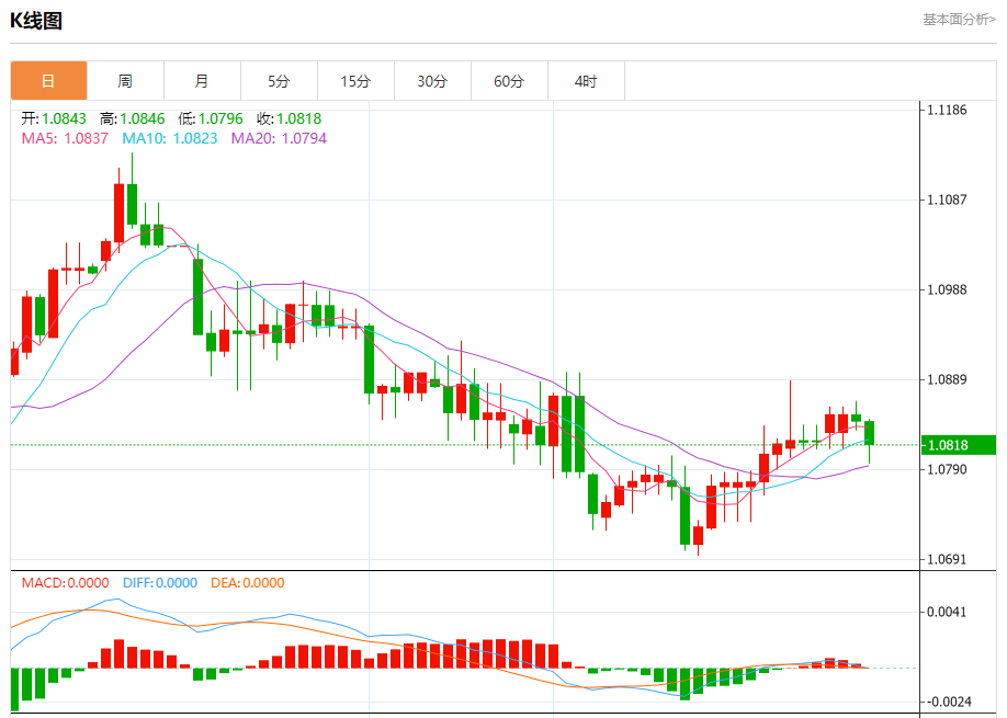 今日周三,截止目前欧元兑美元报1.0821,下跌0.22%。