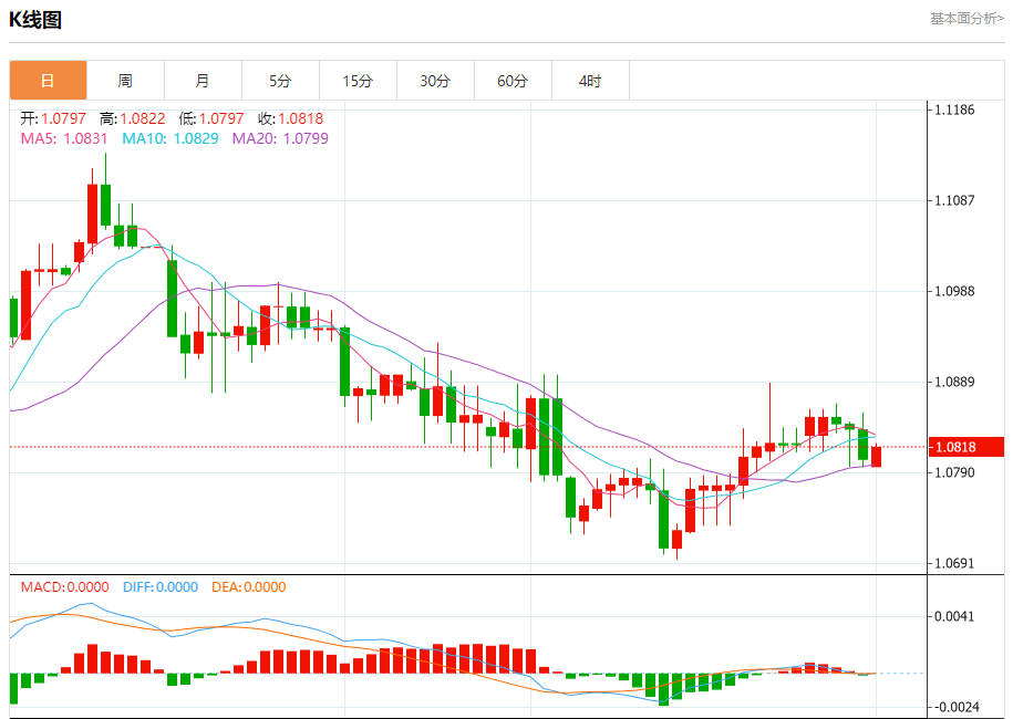 今日周五,截止目前欧元兑美元报1.0819,上涨0.12%。