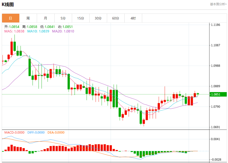 今日周二,截止目前欧元兑美元报1.0852,下跌0.04%。