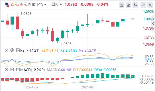 3月6日,周三亚市早盘,欧元/美元徘徊于1.0852附近。