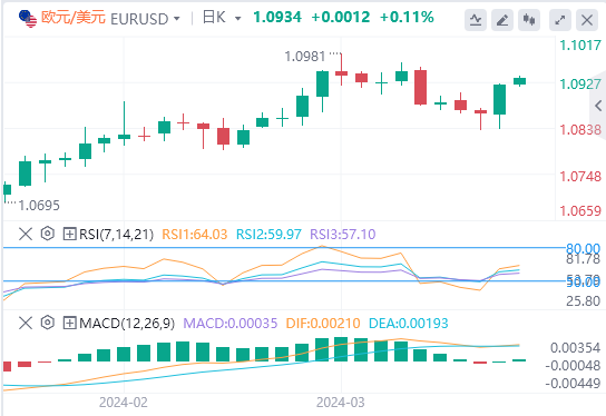 上行方面,预计欧元/美元将测试3月份高位1.0981(3月8日)这一初步阻力位,随后是周线高点1.0998(1月11日)和心理关口1.1000。欧元/美元从该水平进一步上涨后可能会测试2023年12月高点1.1139(12月28日)。