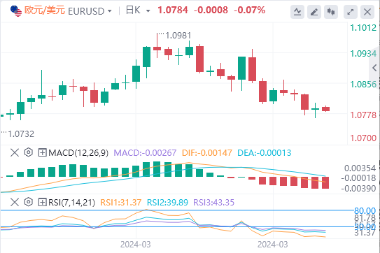 1、突破该关口可能会导致欧元/美元货币对探索23.6%斐波那契回撤位1.0818和9日指数移动平均线(EMA)1.0820附近的区域。进一步的阻力位在1.0850的主要水平,在心理阻力位1.0900之后。技术分析表明,欧元/美元货币对看跌情绪。14天相对强弱指数(RSI)位于50关口下方,表明买盘势头疲软。此外,移动平均收敛散度(MACD)显示信号线下方的背离,并保持在中心线下方。虽然是一个滞后指标,但这种对齐表明确认了欧元/美元货币对的看跌势头。