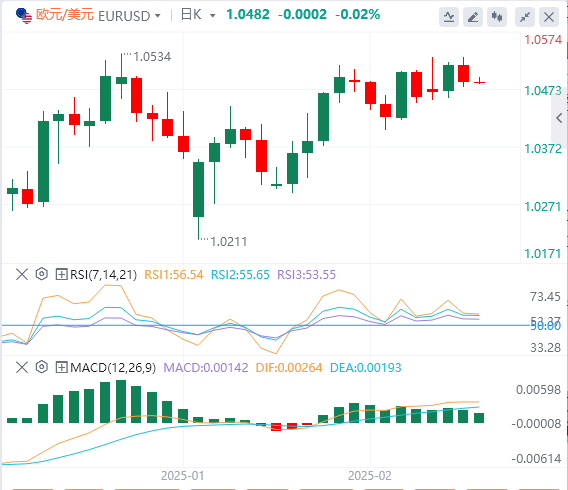 欧元/美元继续在高位波动,但高端势头仍然不温不火。该货币对保持在50天指数移动平均线(EMA)的上方1.0450,但1.0550水平已形成硬障碍。
