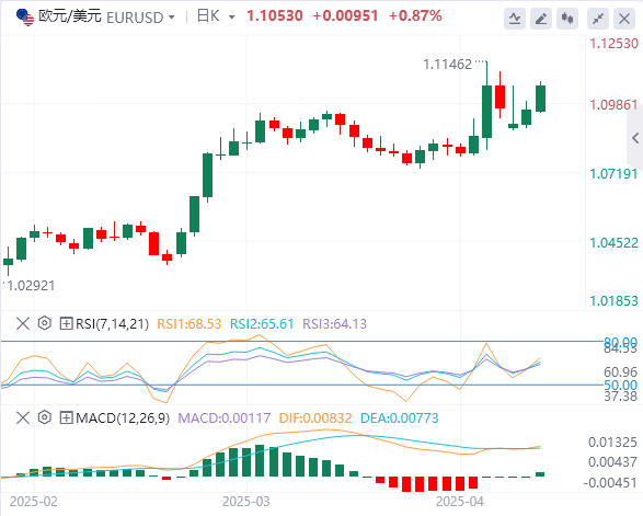 2、在大洋彼岸,由于唐纳德·特朗普的全面关税有可能将欧盟推入衰退,欧洲央行(ECB)将在下周和6月再次降低借贷成本,这可能会限制共同货币的上行空间。根据彭博社的数据,投资者现在预计在4月17日的下一次欧洲央行利率制定会议上降息25个百分点的可能性接近90%,高于之前的70%。