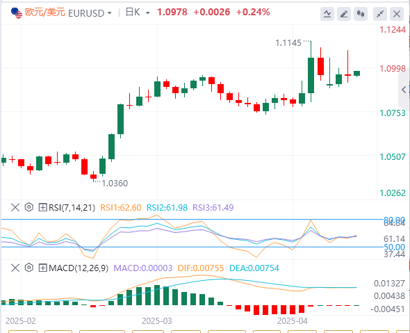 欧元/美元仍然陷入困境,尽管在美国再次放弃自己的关税政策后,投资者风险偏好普遍回升,但仍在1.1000和1.0900之间徘徊。美国总统唐纳德·特朗普通过社交媒体帖子宣布,他的政府将推迟“互惠”关税90天,尽管目前仍有10%的全面关税。全球投资者很快就在新闻中找到了买入按钮,然而,欧元短暂反弹至1.1100关口很快消失,使Fiber处于熟悉的拥堵区域。