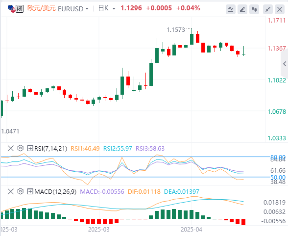 与此同时,德国发布了3月零售销售数据,环比下降0.2%,好于市场预期的-0.4%。根据初步估计,德国第一季度(GDP)显示经济在该季度增长0.2%。该数据符合预期,并较2024年第四季度的-0.2%有所改善。该国的通胀率(以HICP衡量)同比上涨2.2%,低于前值2.3%,但高于预期的2.1%。