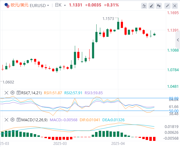 欧元/美元以牺牲美元为代价获得收益。欧元(EUR)交易基本持平,而交易员越来越相信欧洲央行(ECB)将在6月政策会议上再次降息,尽管4月份欧元区统一消费者价格指数(HICP)数据高于预期。