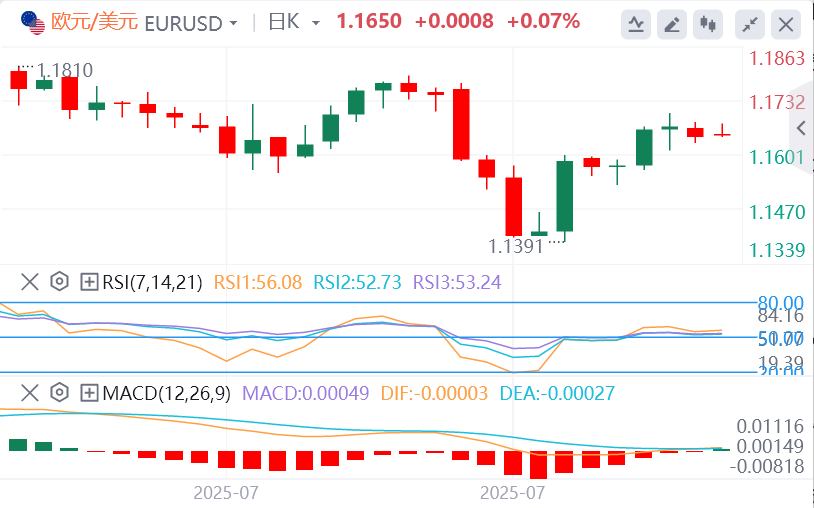 4小时图上的相对强弱指数(RSI)指标保持在50以上,但欧元/美元仍低于200周期简单移动平均线(SMA),目前位于1.1670,反映出买家的犹豫。