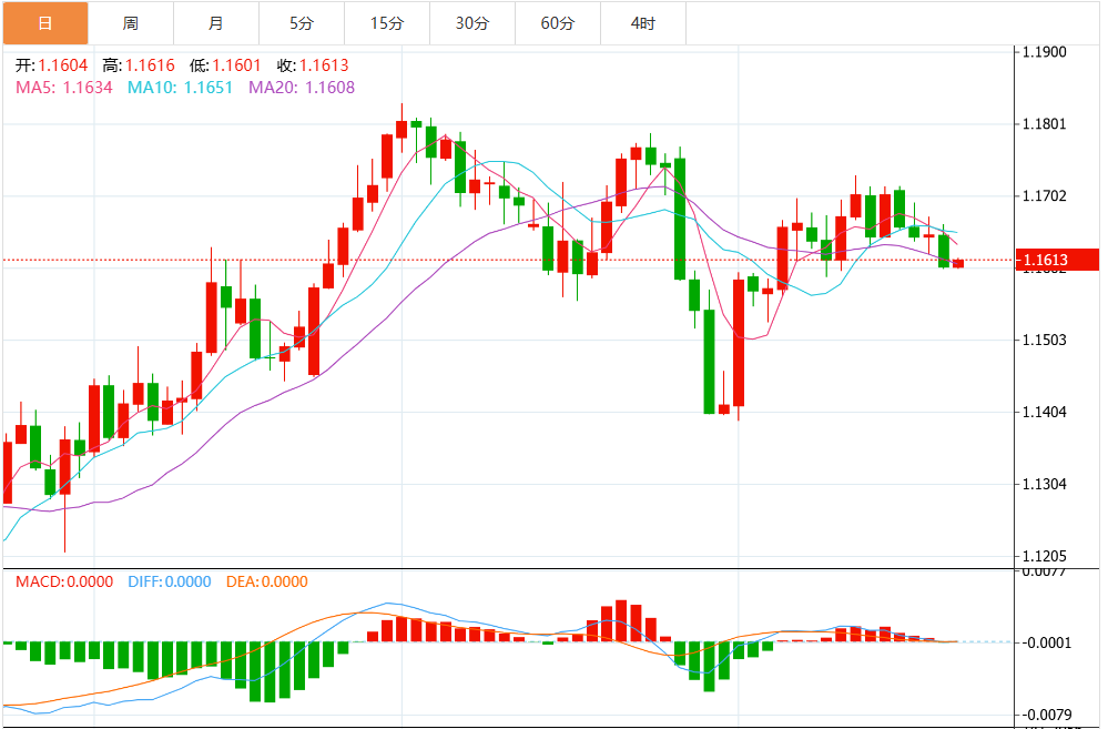 技术上,欧元/美元继续横盘交易,但略微倾向于下行,因为价格行动突破了20日简单移动均线(SMA)1.1608的支撑位。 动能略微转为看跌,相对强弱指数(RSI)跌破中性线。