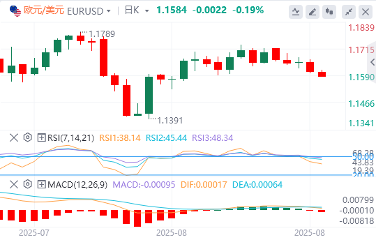 欧元/美元从8月初低点的反弹在本周早些时候7月初高点的趋势线上被拒绝,价格走势向周线区间底部1.1625-1.1630区域推高。4小时相对强弱指数(RSI)仍控制在50水平下方,凸显了看跌势头的增强。
