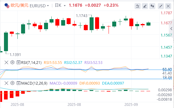 欧元/美元技术图显示出积极趋势,但看涨势头仍然疲软。4小时相对强弱指数在50水平附近不断来回震荡,MACD指标显示出缺乏明显的动能。