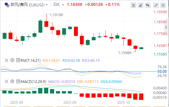 欧元/美元连续三天延续跌势,随着美国政府停摆延长,下跌0.32%,美联储上次会议纪要显示,尽管放松了政策,但官员们对通胀仍持谨慎态度。