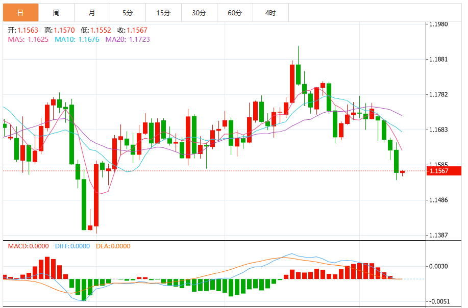 技术上,欧元/美元期内偏向下行,在跌破1.1644的20日简单移动平均线(SMA)和1.1600后,动量指标相对强弱指数(RSI)正朝向中性线,意味着卖方正在获得动能。