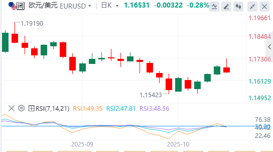 未来一周,欧洲央行官员将密集讲话,德国9月PPI、欧元区8月经常账户及建筑产出将陆续发布。周五迎来重磅数据潮:标普全球将发布10月全球PMI初值,美国9月CPI定于10月24日发布,密歇根大学10月消费者信心终值亦将出炉。在美联储静默期与停摆持续背景下,市场将密切关注贸易谈判进展与关键数据,以打破当前震荡格局。