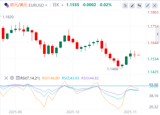 11月11日,周二亚市盘中,欧元/美元徘徊在1.1555附近。