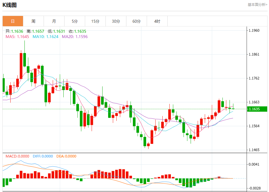 今日周二,截止目前欧元兑美元报1.1636,下跌0.01%。