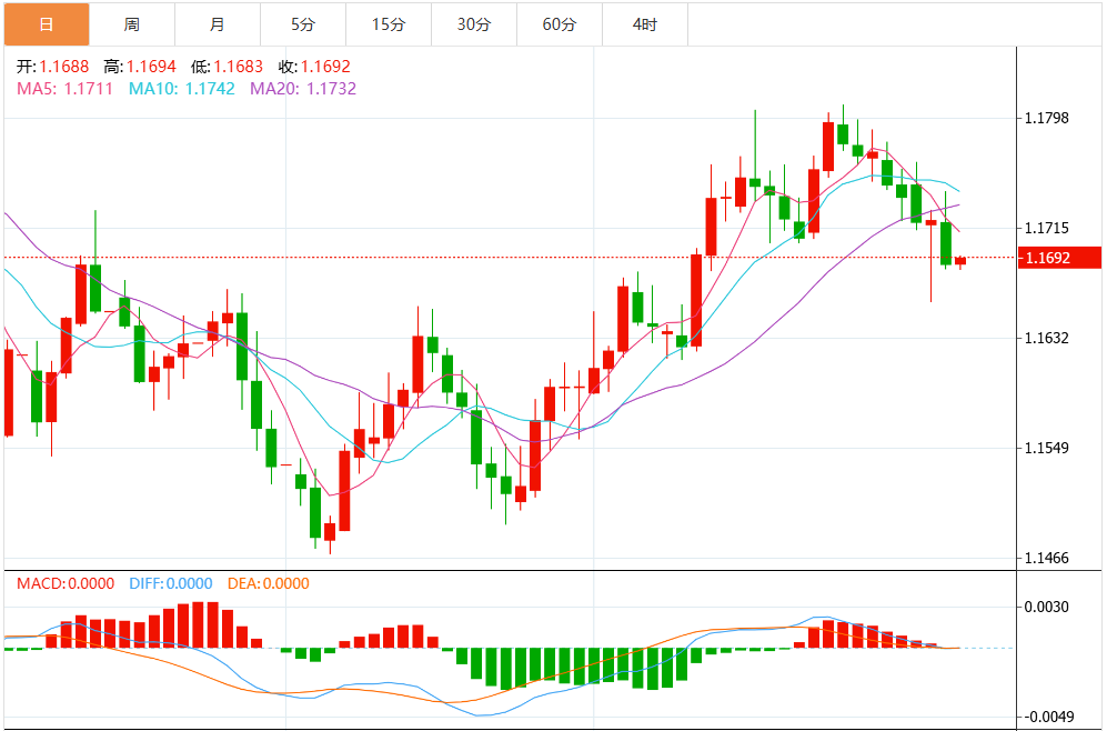 周二的下跌将欧元/美元的技术图景从中性偏向上行转变为中性。 未能在1.1700上方收盘对该货币对施加了下行压力,该货币对距离100日简单移动平均线(SMA)1.1663还有20个点。