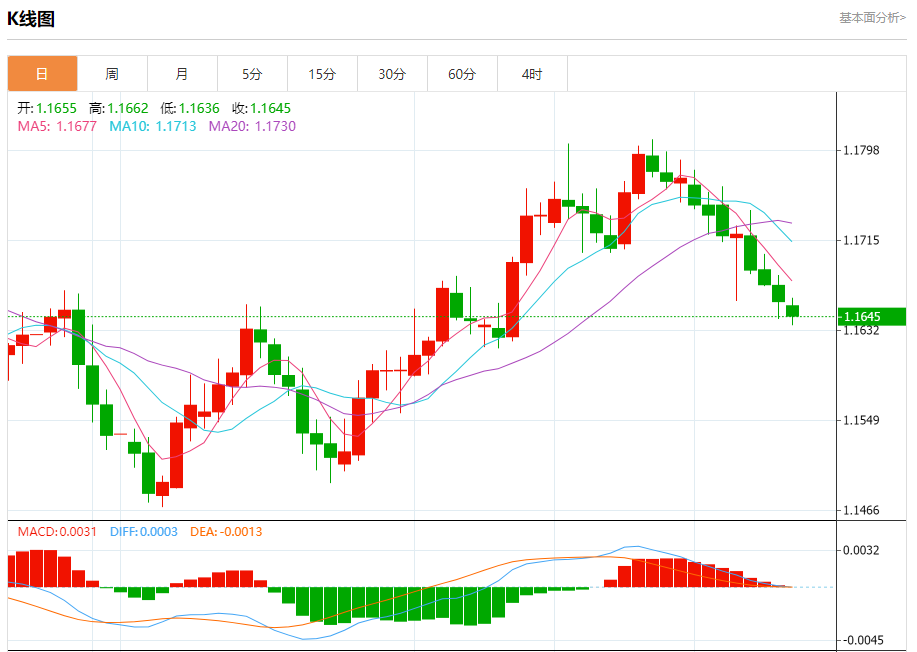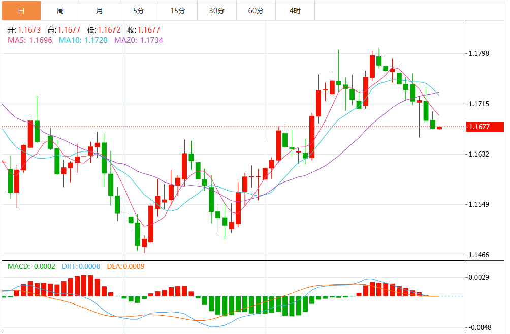 周四,欧元(EUR)兑美元(USD)小幅走低,欧元/美元延续下滑,因美元在美国每周劳动力市场数据发布后继续上涨。 截至发稿时,欧元/美元交投于1.1662,连续第五天处于弱势。