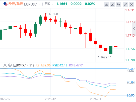 欧元兑美元汇率保持了12月底高点以来的整体看跌趋势。该货币对未能突破1.1700阻力,回落至1.1600中段。