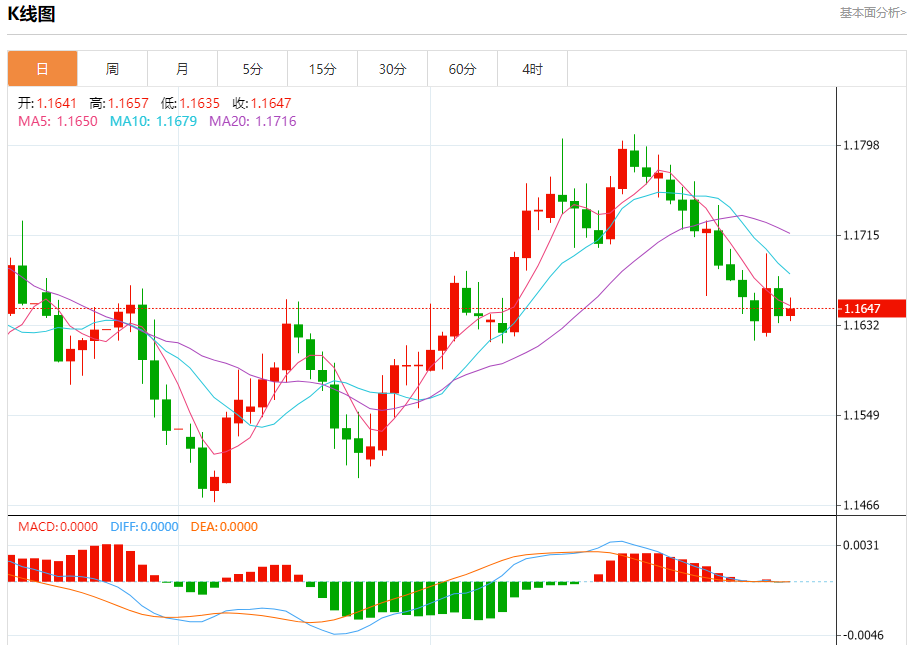 今日周三,截止目前欧元兑美元报1.1646,上涨0.03%。