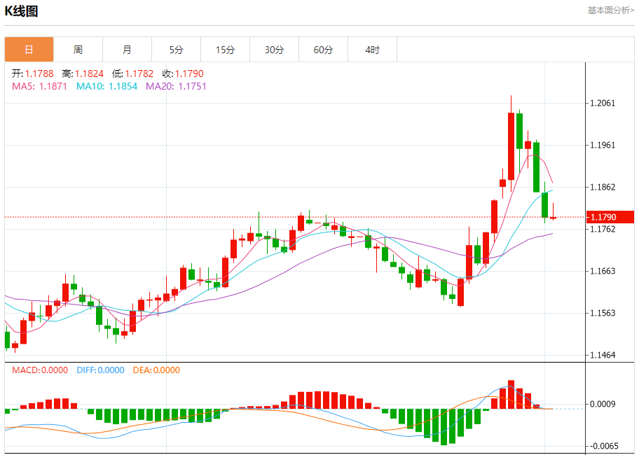 今日周二,截止目前欧元兑美元报1.1791,上涨0.00%。