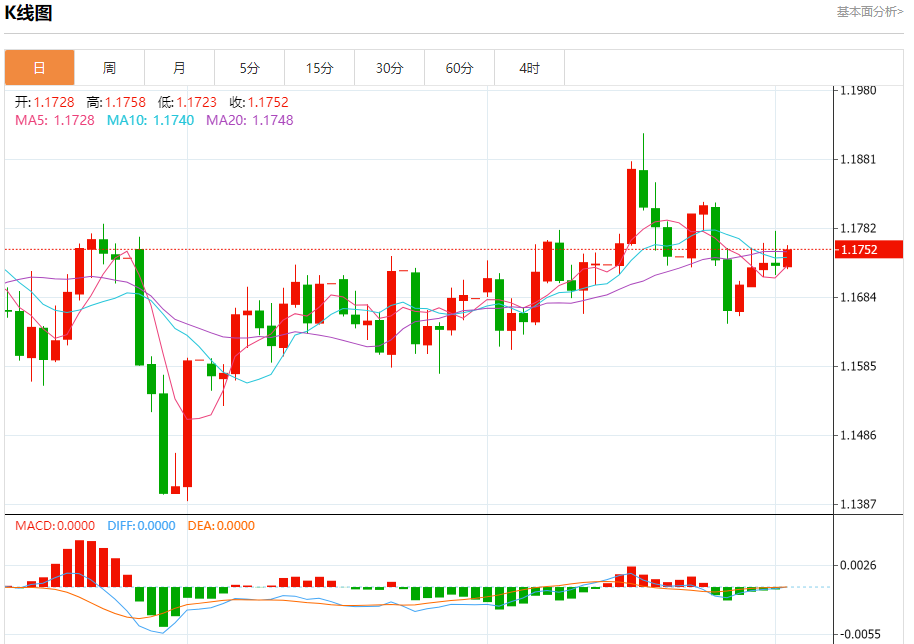 今日周四,截止目前欧元兑美元报1.1752,上涨0.19%。 欧元基本面行情分析 欧洲央行最新消息为,9月11日,欧洲央行公布最新货币政策会议决议,决定继续维持欧元区三大关键利率不变,欧元区存款机制利率、主要再融资利率和边际借贷利率分别维持在2.00%、2.15%、2.40%不变。 欧洲央行在货币政策声明中