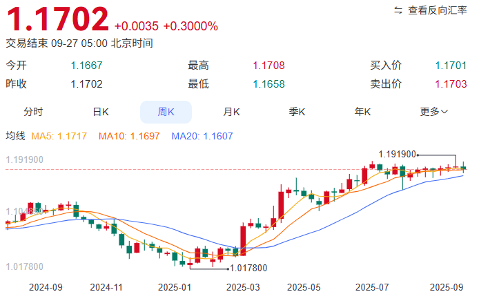 美元多头迎来利好周期,美国经济数据持续超预期,但政治风险悄然潜伏。欧元兑美元汇率在上周表现疲软,收于1.1700关键水平下方,进一步远离九月中旬创下的1.1918的年度高点。这一走势主要受美国强劲经济数据和美联储政策预期调整推动。