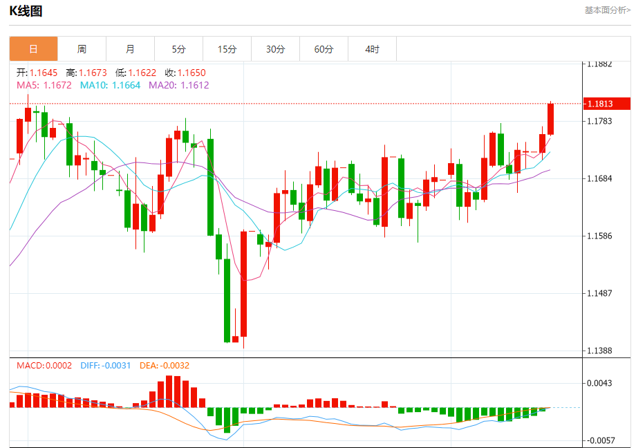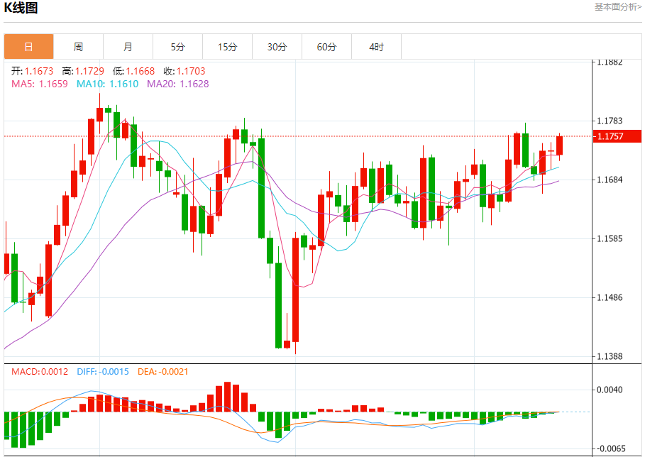 今日周二,截止目前欧元兑美元报1.1814,上涨0.45%。 欧元基本面行情分析 欧洲央行管委卡扎克斯表示,目前不需要下调利率。周二他在接受采访时表示:“当前通胀率约为2%,经济增长可谓疲软。现阶段不存在降息的理由。” 此番言论发表前,欧洲央行上周连续第二次会议维持借贷成本不变,多数决策者认