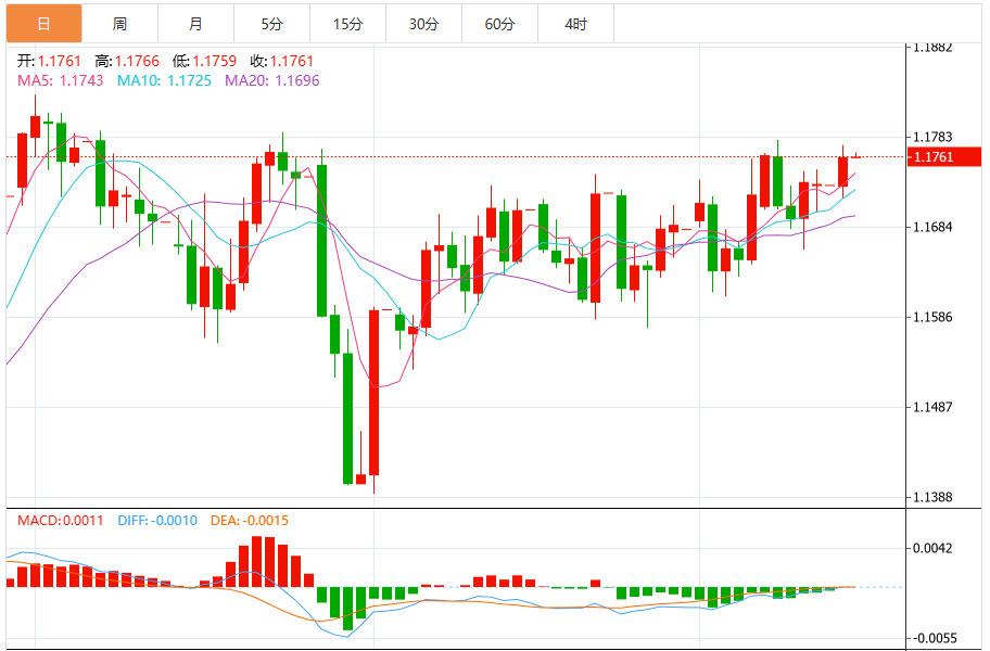 欧元兑美元今日汇率最高1.1782,最低1.1779,涨跌0.0021,涨跌幅0.18%。 市场基本面分析 德意志银行的马克·沃尔在一份报告中表示,欧洲央行更新后的预测表明,利率可能会在更长时间内维持在低位。一方面,央行工作人员对总体通胀的近期预测略有上调,这意味着2026年通胀低于目标的幅度会有所缩小。然而,