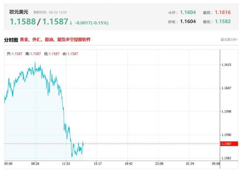 8月22日,受欧元区以及该地区一些主要经济体好于预期的商业活动的提振,欧元/美元在周四欧洲早盘反弹,但在美国时段开盘前失去了动力,并且在美国采购经理人指数和初请失业金人数数据之前仍然没有明显偏见地走势。 数据发布后,该货币对从盘中低点1.1625左右跃升至1.1650上方的水平,尽管从更广泛的角度来看,它仍然接