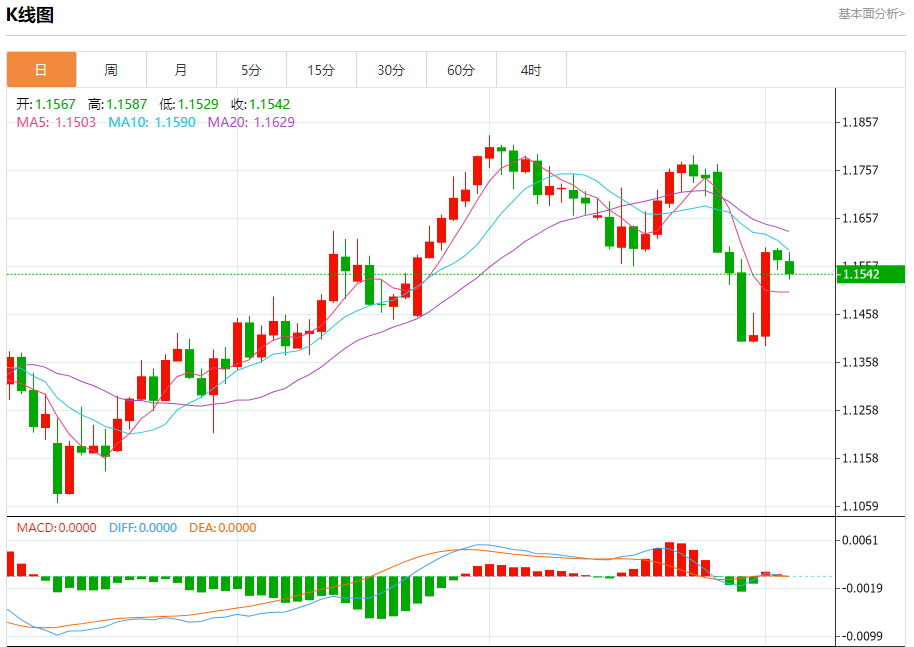 欧元兑美元今日汇率最高1.1569,最低1.1567,涨跌-0.0019,涨跌幅-0.16%。 市场基本面分析 欧洲央行管理委员会委员西姆库斯(iku)表示,预计中期通胀将维持在2%的目标水平。这一判断与欧洲央行的通胀目标一致。这也反映出欧洲央行对当前欧元区物价走势的评估,并释放出对货币政策效果的信心。稳定的中期
