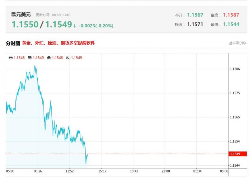 8月5日,周二欧市盘中,欧元/美元周一小幅下跌。投资者开始接受周五严峻的美国非农就业报告,但人们对这些数据可能已经为美联储下个月降息带来压力的更高希望正在成为美元复苏的阻力。 欧元从上周五高点1.1600回落后,仍稳定在1.1550上方。该货币对从美国非农就业报告(NF)发布前触及的数周低点1.1400反弹后,占据了周