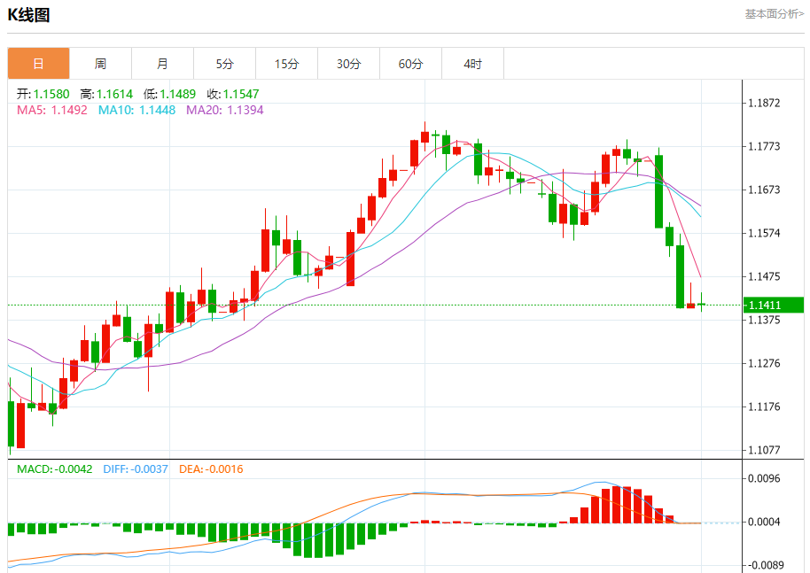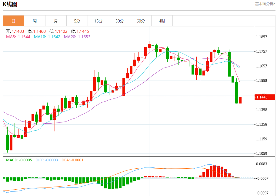 周四亚盘,欧元/美元徘徊于1.1433附近,日内维持上涨。疲弱的欧元区增长和经济日程稀缺未能提供支持,使得欧元/美元面临进一步下行风险。 市场基本面分析 欧元/美元连续第三天下跌,跌幅超过1.20%,因美联储维持利率不变,杰罗姆·鲍威尔倾向鹰派。此外,美国强劲的增长数据和欧元区经济日程的稀缺,推动该货币对跌