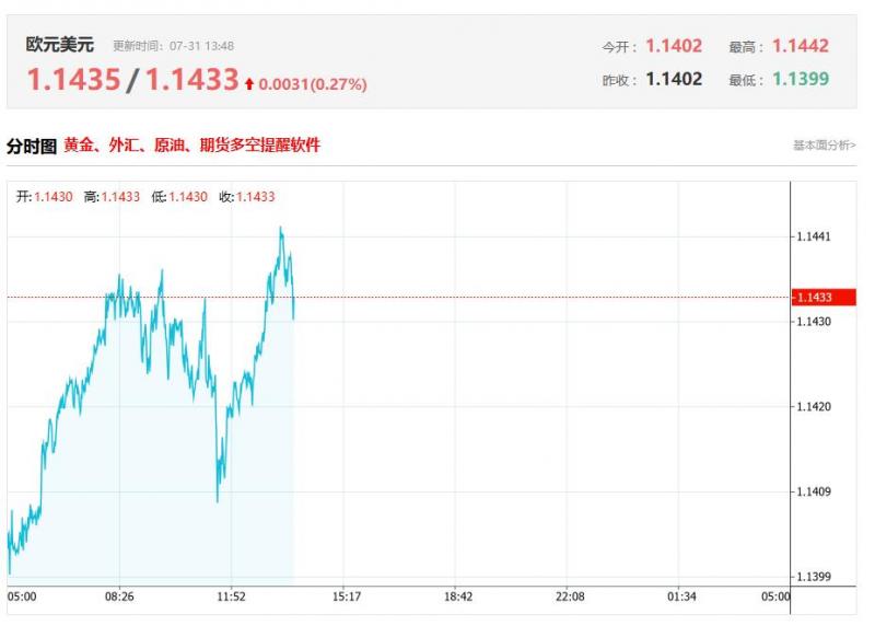 8月1日,周五亚市盘中,欧元/美元徘徊在1.1426附近。 欧元/美元周四收复部分失地,小幅上涨0.10%,此前美国数据显示经济强劲,证明美联储不愿降息是合理的,正如周三所见证的那样。在撰写本文时,该货币对交投于1.1417,几乎没有变化。 华尔街开盘前,美联储首选的通胀指标核心个人消费支出(C)物价指数超出预期和上