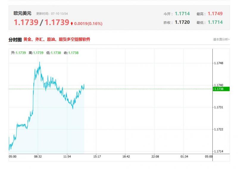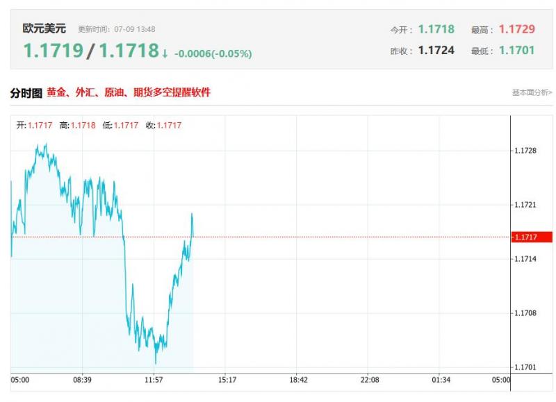 7月11日,周五亚市盘中,欧元/美元徘徊在1.1704附近。 欧元/美元在北美时段下跌,下跌超过0.23%,因为市场参与者消化了一份美国就业报告,该报告加强了美联储在即将到来的7月会议上维持利率不变的理由。在撰写本文时,该货币对在达到峰值1.1749后交易于1.1695。 华尔街周四收盘上涨,交易员评估了美国当前的就业市场状