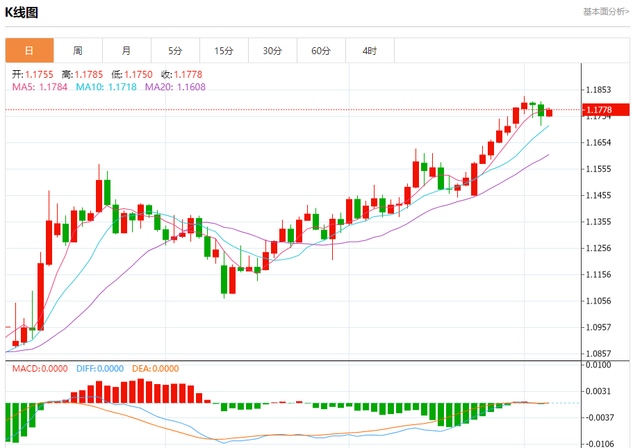 欧元兑美元今日汇率最高1.1794,最低1.1792,涨跌-0.0006,涨跌幅-0.05%。 市场基本面分析 欧洲央行管委穆勒周二表示,欧洲央行可以暂缓进一步调整利率,且在本轮周期内没有必要大幅放宽货币政策。自去年6月以来,欧洲央行已累计下调基准存款利率2个百分点,但已暗示7月将按兵不动。金融市场预计央行将维