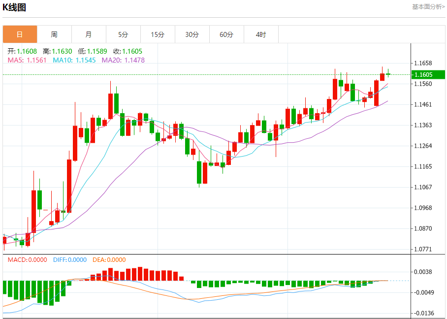 今日周三,截止目前欧元兑美元报1.1608,下跌0.02%。 欧元基本面行情分析 近期市场对欧元区经济的信心有所回升,其中德国经济复苏迹象明显。6月,德国慕尼黑经济研究所商业景气指数升至88.4,创近一年新高。慕尼黑经济研究所所长克莱门斯·菲斯特说:“德国经济正在缓慢恢复信心。” 货币政策方面