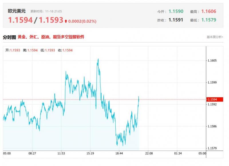 11月18日,周二早盘,欧元/美元徘徊在1.1589附近。 欧元兑美元在北美交易时段下跌030%,因美联储可能持平的猜测,美元正享受健康回升。 随着美国政府重启,大量数据涌现,风险厌恶情绪使美元竞价持续,其中最引领的是周四发布的非农就业报告。美国劳工统计局(BL)将于周五公布这些数据,实际收入数据也将公布。与此同